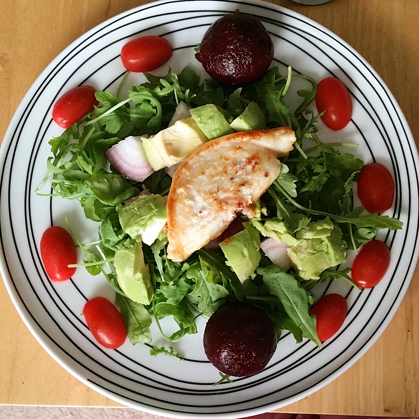 This way it’s easy to make substitutions at mealtimes and it’s especially helpful come tea time when you can grab a fruit and nut bar instead of the Fruit N’Nut Dairy Milk! My sister had clearly been taking notes and made this amazing Goat’s cheese, beetroot, avocado, red onion and rocket salad for supper last night.